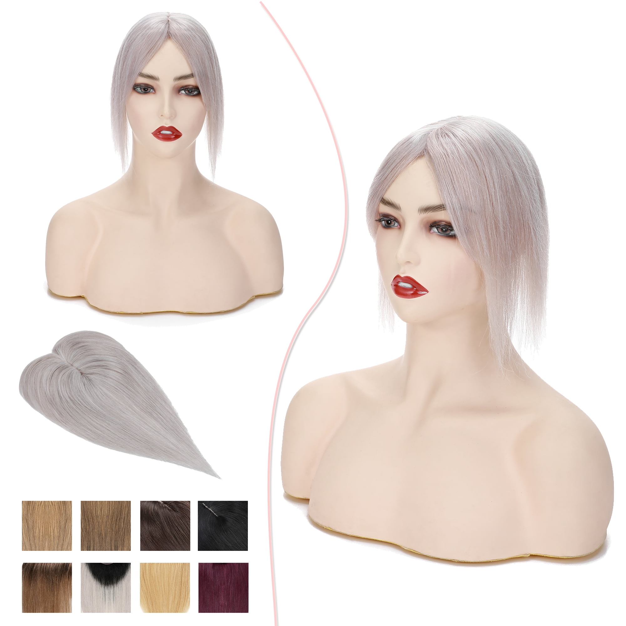 My Lady 100 Remy Human Hair Women Topper Hair Toppers Silk Base Hair Pieces Clip In Hair Topper With 3d Air Bangs 17 Colors 10inch Grey Walmart Com